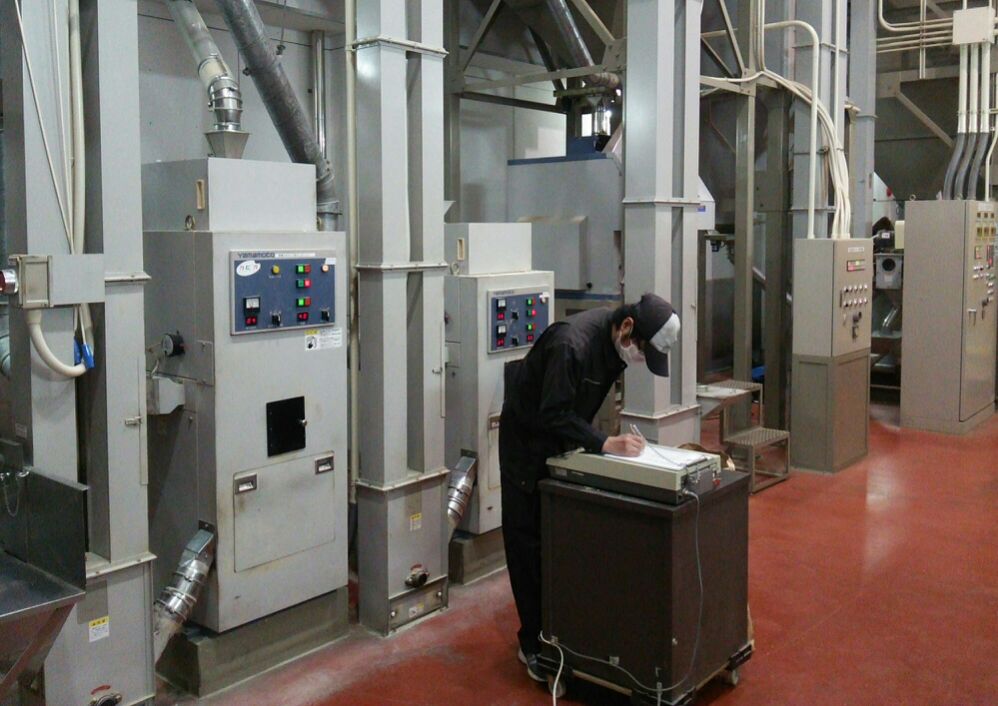 農作業のない冬期間を利用して農業担当者の工場業務研修を行っています。一次研修の最終日は単独での精米作業です。色彩選別機やスーパーチェッカー、金属探知機、無洗米機などを操作しながら白度計で精米度合いを確認していきます。別日には発芽玄米製造研修も併せて行います。
