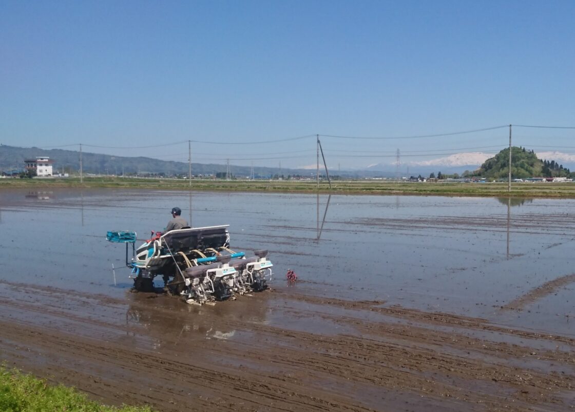 令和元年稲作開始 2023年6月15日2019年5月7日 元号も令和に変わり、その最初の年の田植えが始まりました。桜の便りが聞こえてきた頃から天気は良くても気温が上がらない日が続いていますが、例年同様の日程で快晴の中、先ずコシヒカリの直播から始めました。昨今の異常気象だけが心配です。