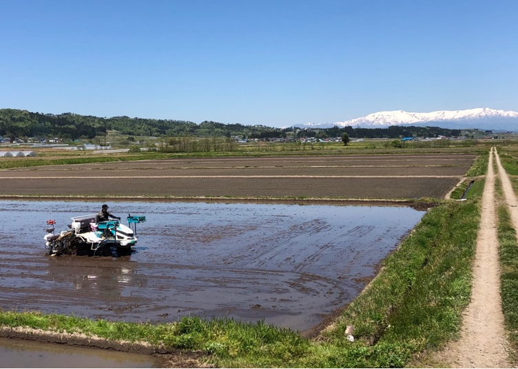 令和2年田植え始まりました 2023年6月15日2020年5月8日 令和2年の田植えが5月5日、昨年とほぼ同様の日程で始まりました。先ずはコシヒカリの直播からで、今年は昨年より1.5倍多い約8haの直播を行います。文字通りの五月晴れで県境の飯豊連峰がクッキリと見えます。