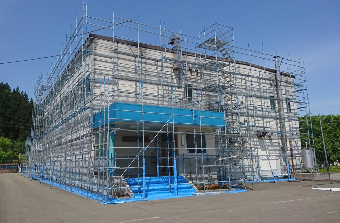 工場稼働から20年目にして初めて、外壁、屋根の全面塗装中です。予想以上に痛んでいた外壁は修繕しながら、屋根は遮熱塗料を使用して内部温度を若干でも下げ、省エネ、省コストを目論んでいます。洗浄作業から全面手塗り作業で約1か月かかっています。