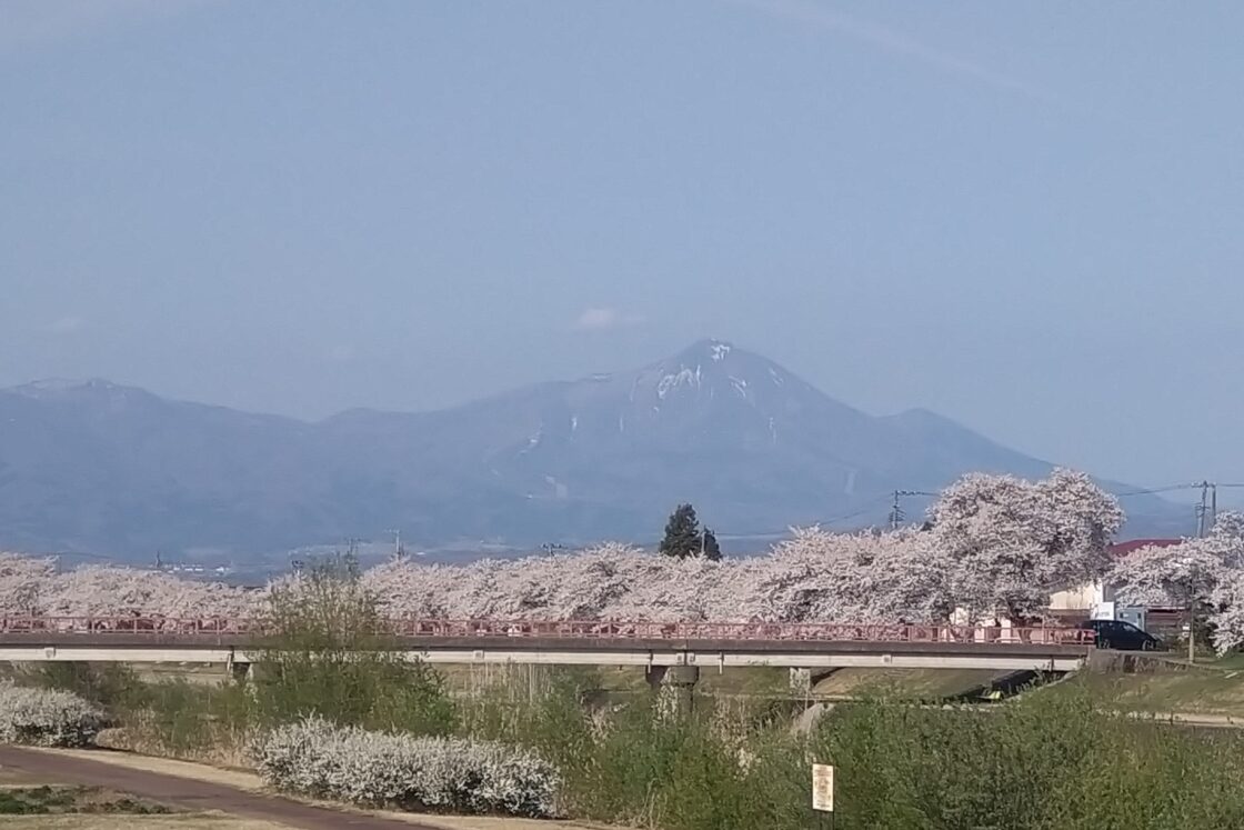 桜満開 2023年6月15日2021年4月14日 最近にない多雪の冬で春を心配していましたが、急に暖かくなって今年の桜は例年より10日ほど早く咲き誇ってます。宮川の桜並木と雪の残る磐梯山が綺麗です。夜にはライトアップされています。
