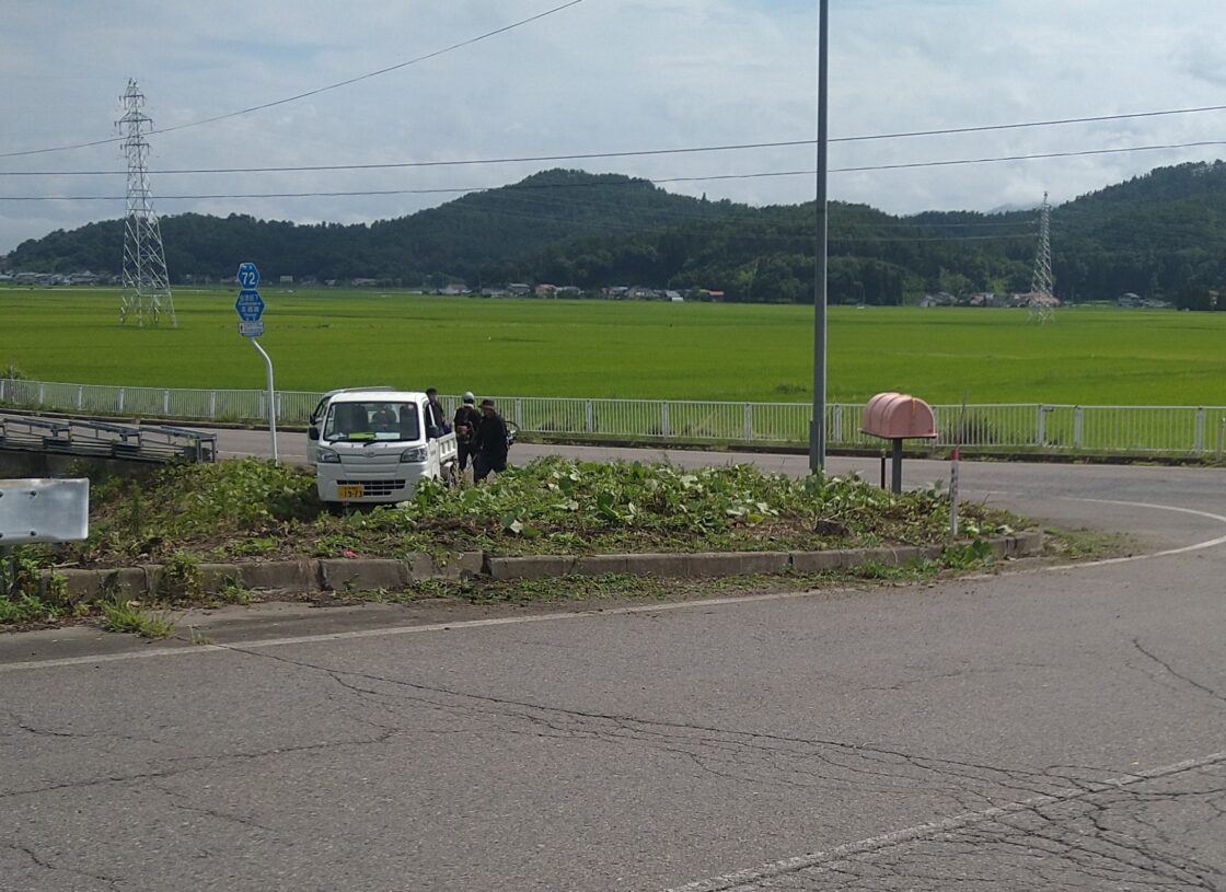 環境ボランティア作業 2023年6月15日2021年7月30日 恒例の環境ボランティア作業で会社付近の県道T字路の除草作業を行いました。1m以上に伸びた草で視界が確保できず停止線をオーバーしてしまう危険なT字路です。左右除草したので見通し良好です。