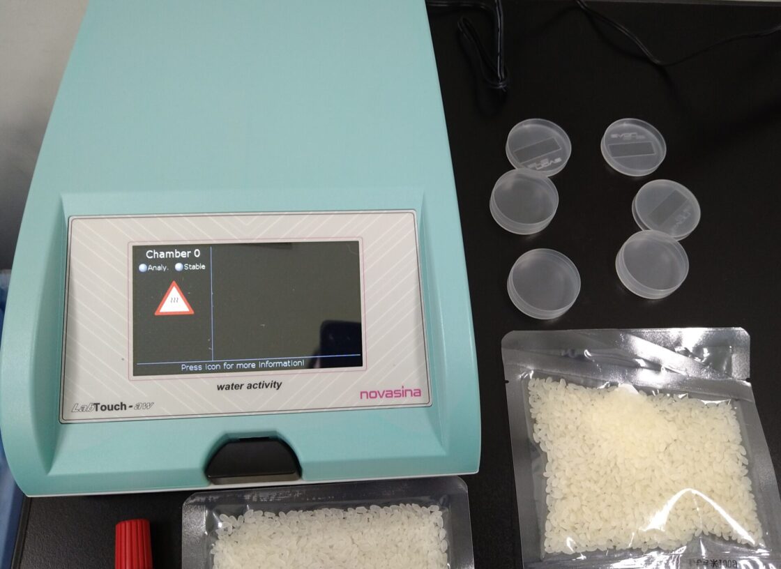 水分活性値の測定 2023年6月15日2022年7月14日 加工食品の常温販売におけるボツリヌス菌に関する基準が令和6年から設けられることになり、その一つが水分活性値です。0.94未満でなければならないので、当社でもロットごとに記録を取るように機器を導入しデータを取り始めました。
