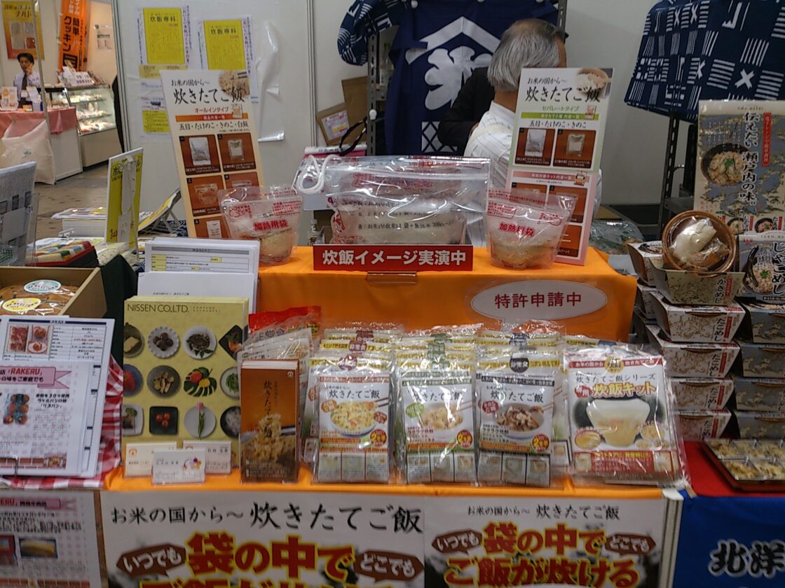4月3日~5日に東京ビッグサイトで開催されたファベックス2013に、お米関連の事業者と共同出店しました。早炊米を使ったどんなお水でも炊ける非常食、レンジで炊けるご当地ごはん、もちもち食感の米粉パンに米粉麺が評判を呼びました。これからもお米6次化商品をどんどん開発していきます。