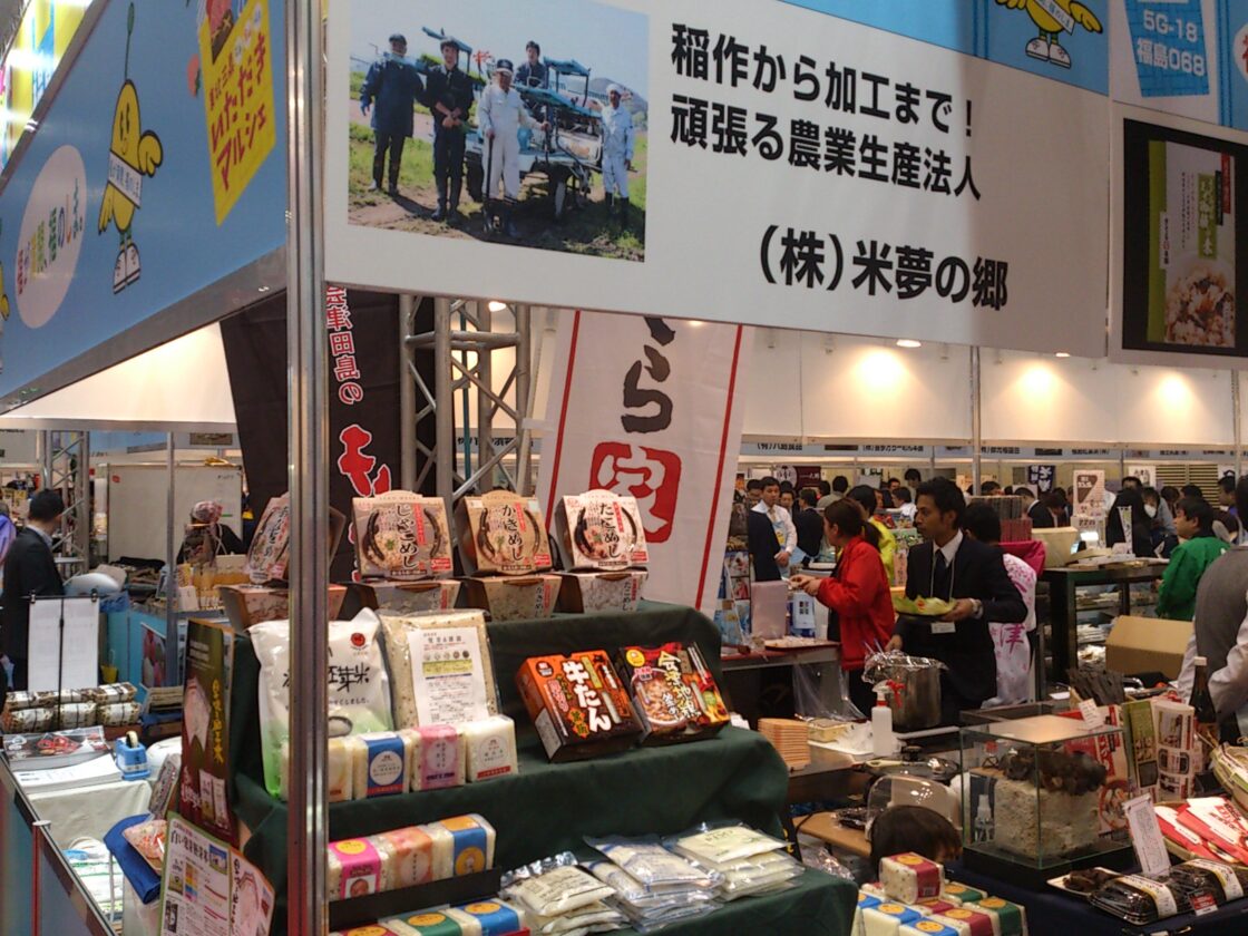 2月12日から3日間東京ビッグサイトで開催されたスーパーマーケットトレードショー2014に出展いたしました。最終日は雪がちらつくあいにくの天気でしたが8万人を超える皆様が来場いたしました。「東北三県いただきマルシェ」の一員として旧知のお客様、新規のお客様に会津のお米をさまざまな形で提案させていただきました。