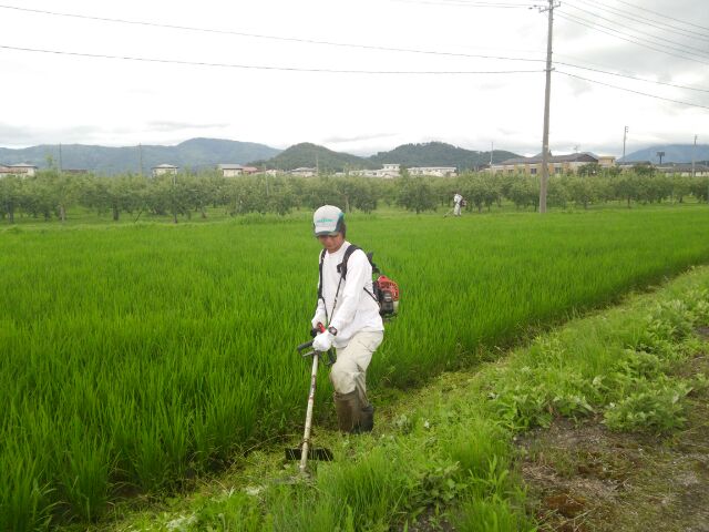 台風8号の接近、通過で心配されましたが何事もなく、水田の草刈り作業が順調に行われています。50町歩の水田なので推計で約100kmの畔の草刈りを9月中旬までに3回行います。炎天下の作業でなかなか大変ですが秋の収穫に向けて汗を流しています。