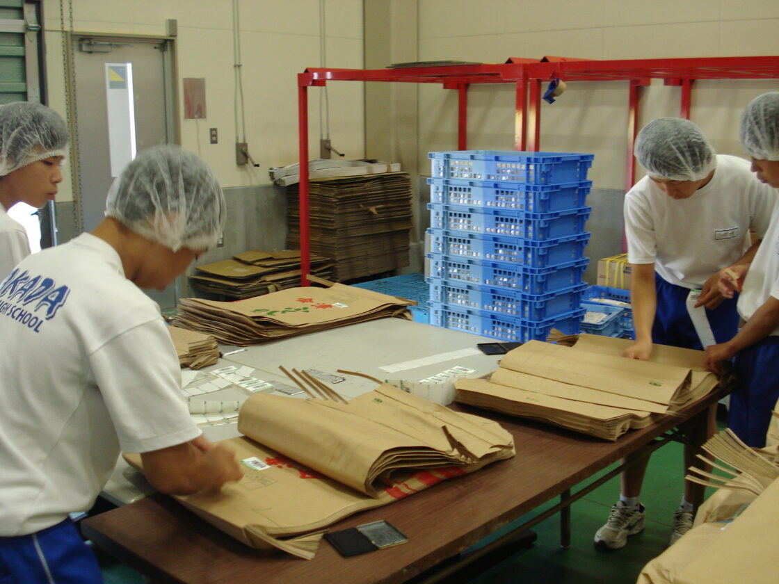 2014職場体験 2023年6月15日2014年9月12日 地元の高田中学校2年生4名、本郷中学校1年生2名の職場体験が行われました。工場では衛生管理、検査作業を体験してもらいました。まもなく始める収穫作業に関しては玄米袋に品種名のスタンプを押す作業を体験してもらいました。