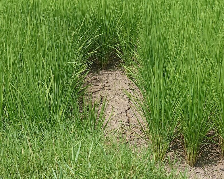 ここ数年特に異常気象が叫ばれていますが、今年は一段と長くて暑い夏になっています。「田んぼに水が入ると肌寒くなる」とか「お盆過ぎれば…」とかは、もはや「今は昔」の感があります。出穂が始まるこの時期に最も大事な水がなく、地割れが始まっています。高温障害、日照りで豊作は期待できない状況です。恵みの雨を待っています。