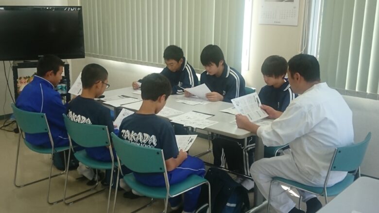 今年も地元の本郷中学校1年生3名、高田中学校2年生3名の職場体験に協力させてもらいました。最初は衛生管理の大事さを座学で学んでもらい、その後、玄米袋の押印や加工製品の検品作業を体験してもらいました。